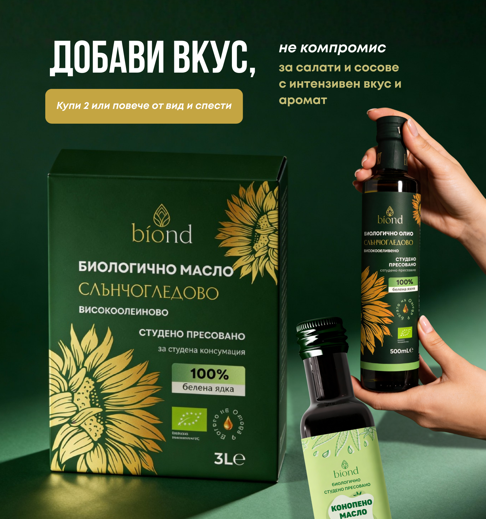 Добре дошли в Biond, вашата водеща дестинация за елегантни и висококачествени органични масла, брашна и семена в България. Нашата марка е посветена на насърчаването на здравословния начин на живот и на дълбока връзка между хората и природата. Ние се гордеем с производството на биологични масла, брашна и семена, които са не само хранителни, но и полезни.